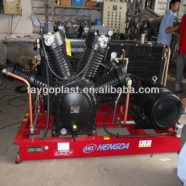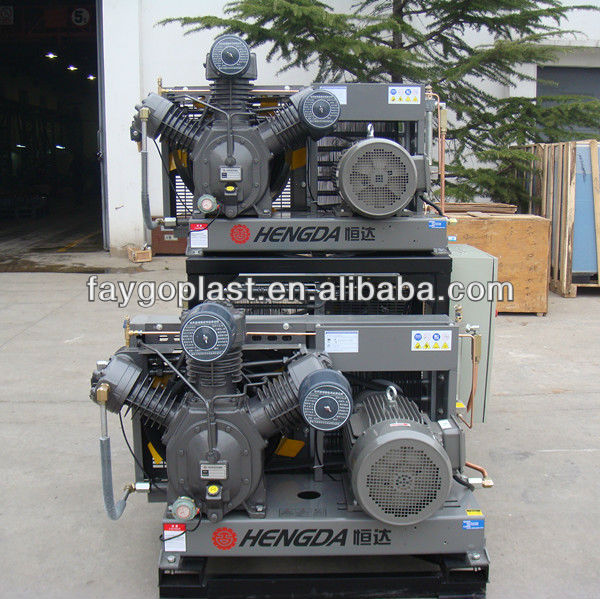 High efficiency,high performance engergy saving,reliability and long lift are the principle characteristics o HENGDA high pressure air compressor.The Free air delivery from 0.15m3/min to 6.0m3/min.HENGDA makes a very wide model of rang of compressor to meet a wide rand of industrial application and requirement , especially for PET BLOWING Industry. Every machine is equipped with starting,unloading solenoid valve,auto condensate drain valve and advanced capacity control to make machine to operate safe and stable.
