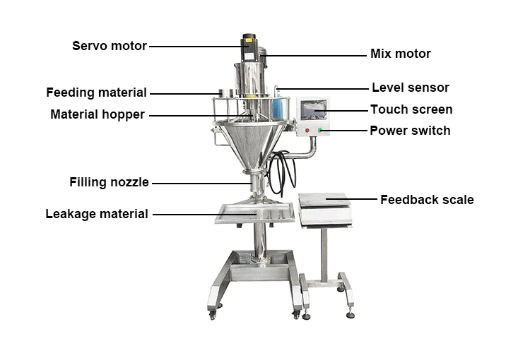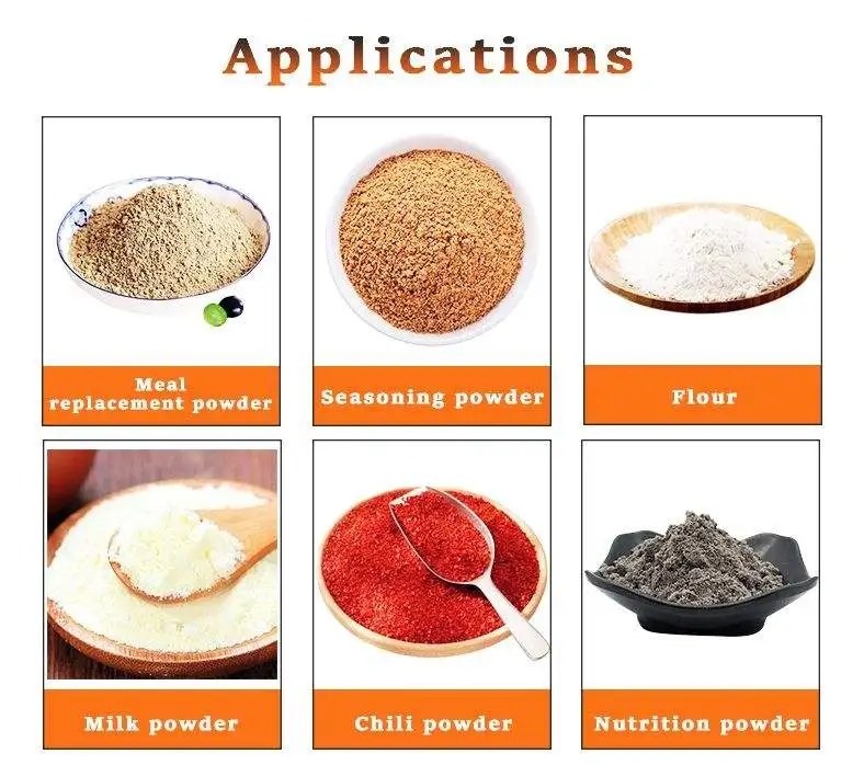 Applicable products: flour, cocoa powder, solid beverages, white sugar, monosodium glutamate, glucose, powdered additives, toner, talcum powder, pesticides, dyes, flavors and fragrances, etc.