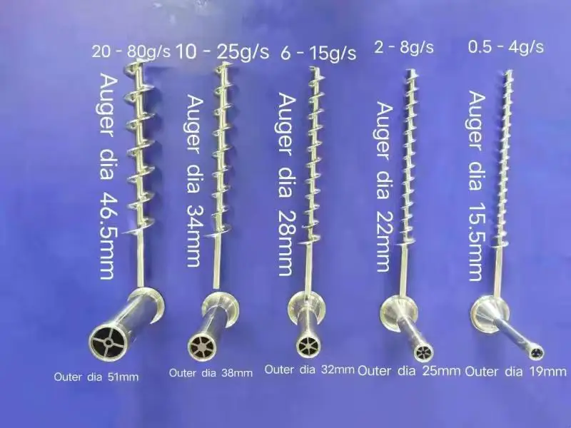 Suit for packing powder and granular materials, such as veterinary medicine, granular additive, white granulated sugar, cotton, sugar, glucose, solid beverage, pharmaceutical solids, carbon powder, talcum powder, pesticides,dyes, flavors and fragrances. The hopper is made of high quality stainless steel, corrosion resistant, easy to operate and intuitive; filling with stepper motor drive, the use of Taiwan maintenance free motor.Stable performance, high packaging accuracy. Through the replacement of spiral accessories can adapt to a variety of packaging specifications, powder fine granular material packaging.