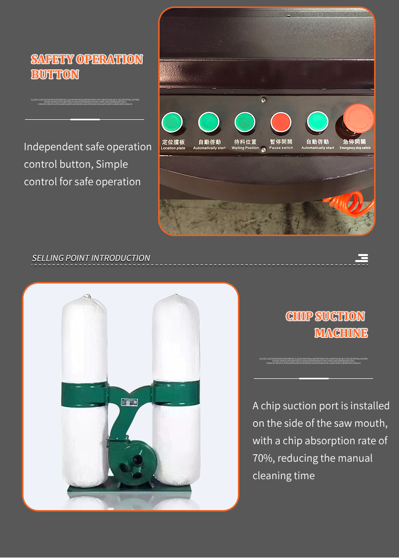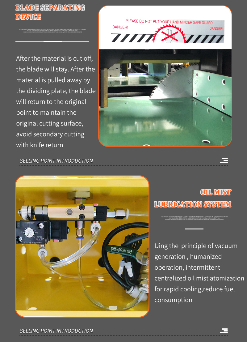 6. Automatic micro oil mist cooling system makes the cutting surface smooth and of little flash and strain, also makes the saw blade long-time use.