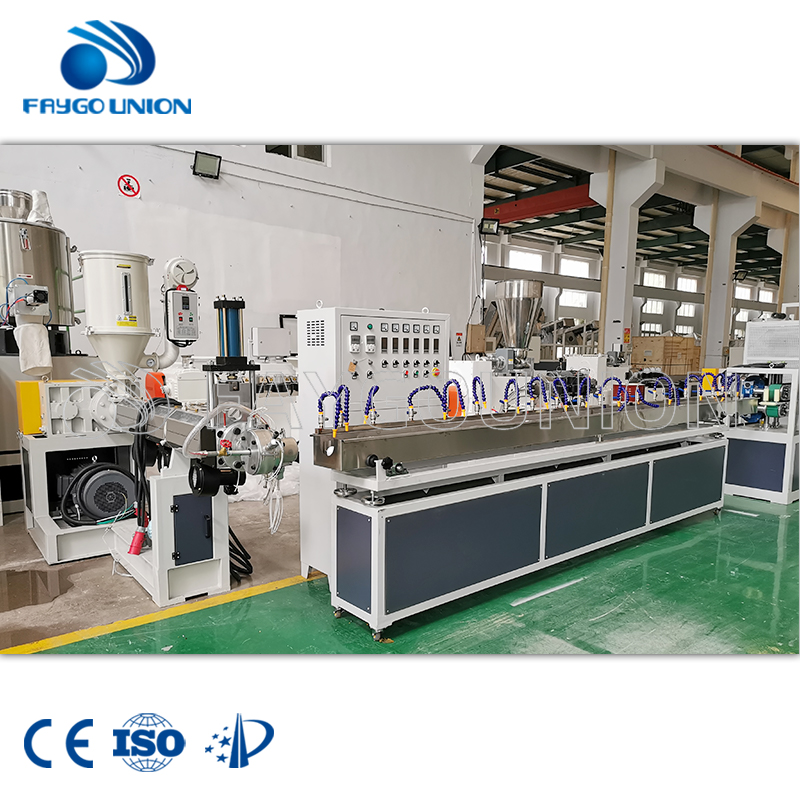 This production line is mainly is used for to produce PVC fiber reinforced hose. This line including two extruders, one 6meter vacuum cooling tank, one high speed braided hose, one 6 meters water tank, two haul off machine, one heating oven, one auto winder. With new technology, the max production speed could reach 25meters per minute.