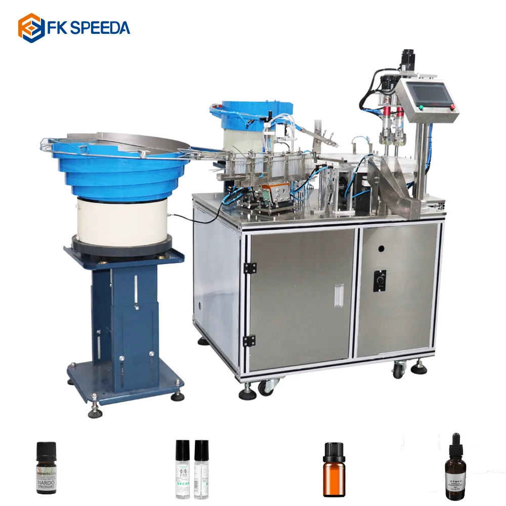 automatic test tube filling Screw capping filling machine is suitable for labeling various small-sized cylindrical and conical products, such as cosmetic round bottles, small bottles, plastic bottles, oral liquid bottle labeling, pen holder labeling, lipstick labeling,and other small round bottles liquid bottle filling, capping and labeling etc. It is widely used in round bottle labeling in food, cosmetics, wine making, beverage industry and other industries, and can realize semicircular labeling.