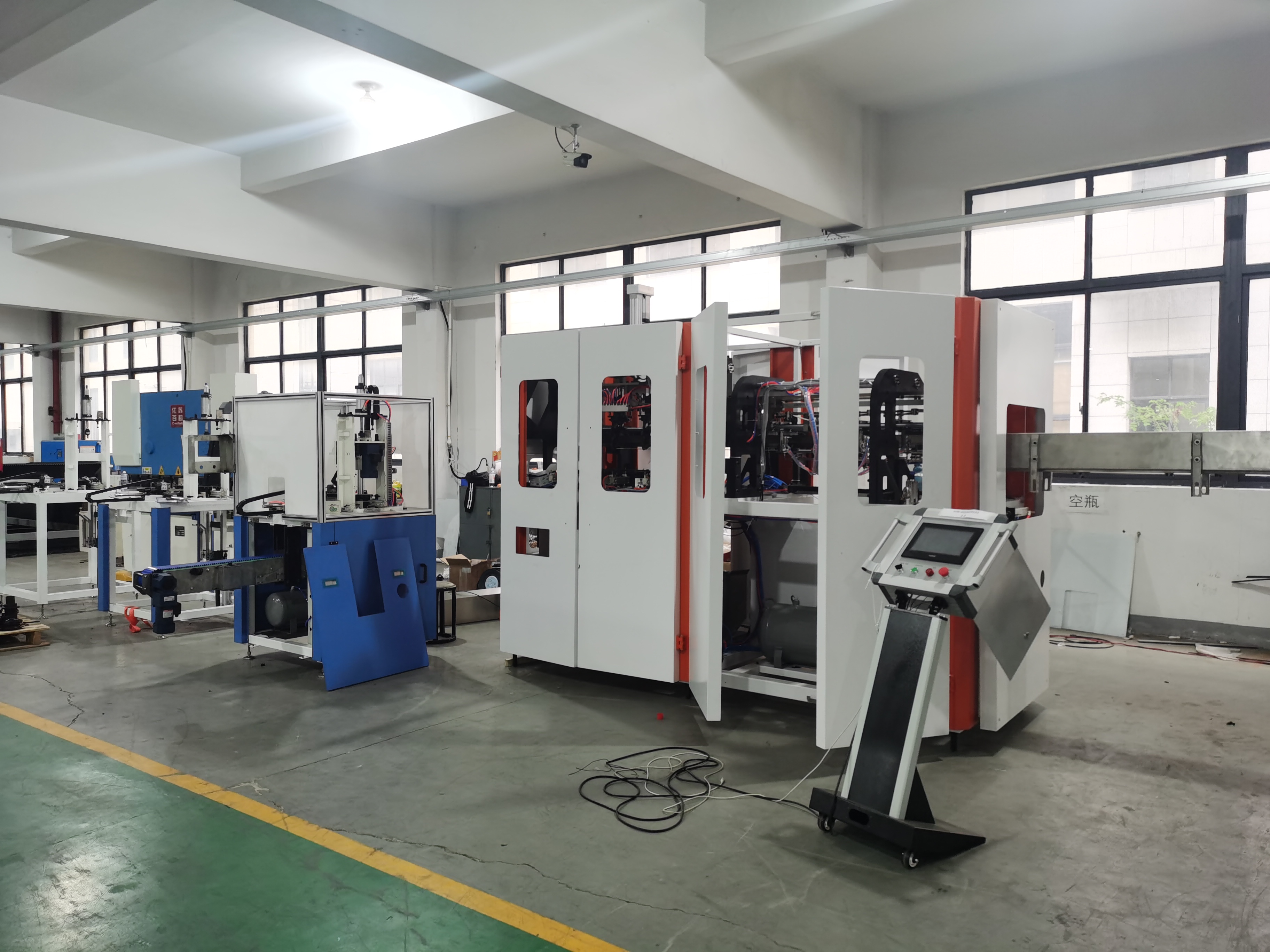 Machine advantages :Adopt touch -type color HMI systemeasyto operate can blow maximum 1.5 liter bottles,maximum production speed can be 2500 bottles/hour,bottle outlet system is able to add a linking and combine with conveyor system to connect to the filling machine.